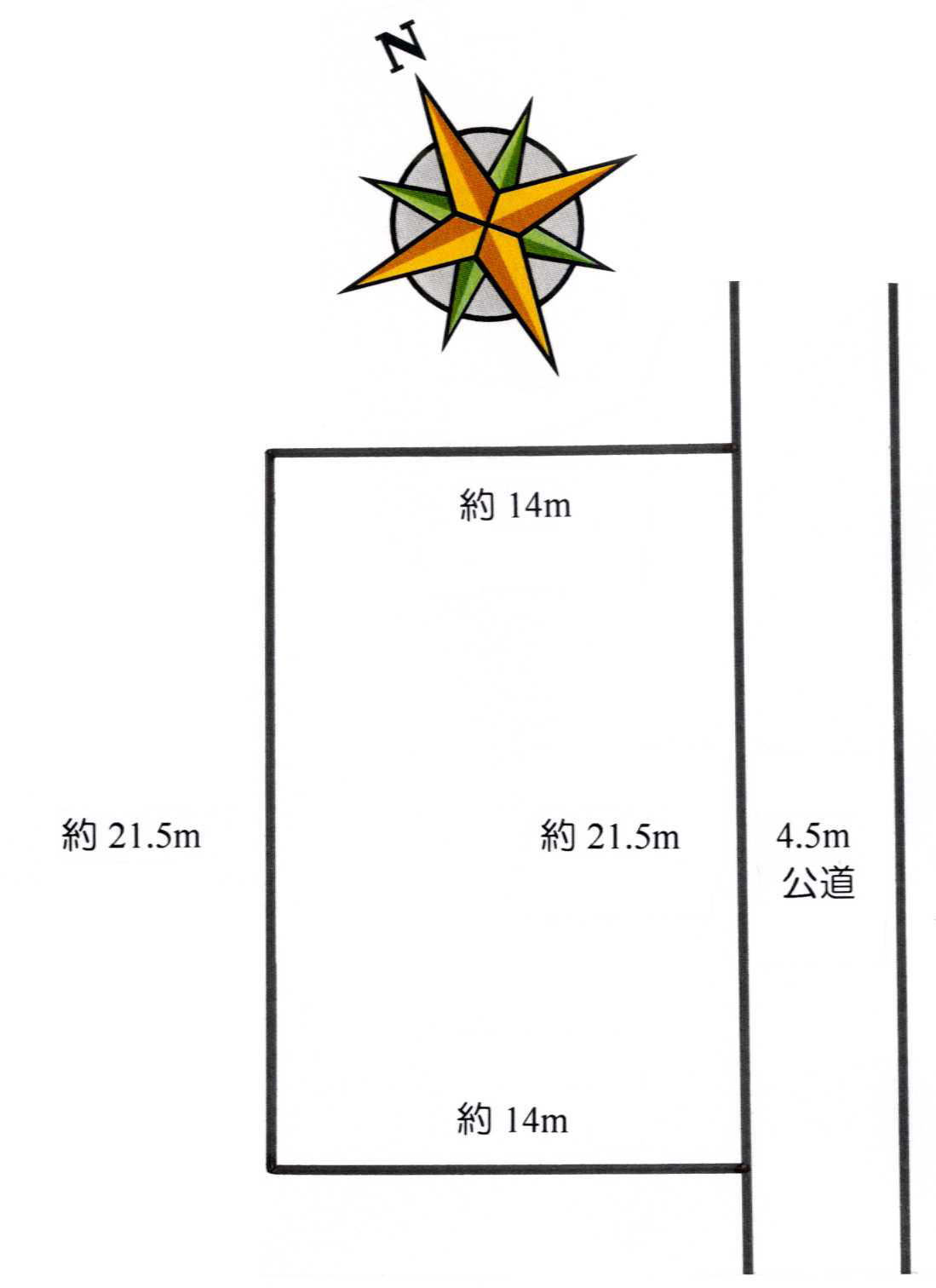 | 道路 | 東南側4.5m公道に約21.5m接道 | 飲用水 | 公営上水道 |