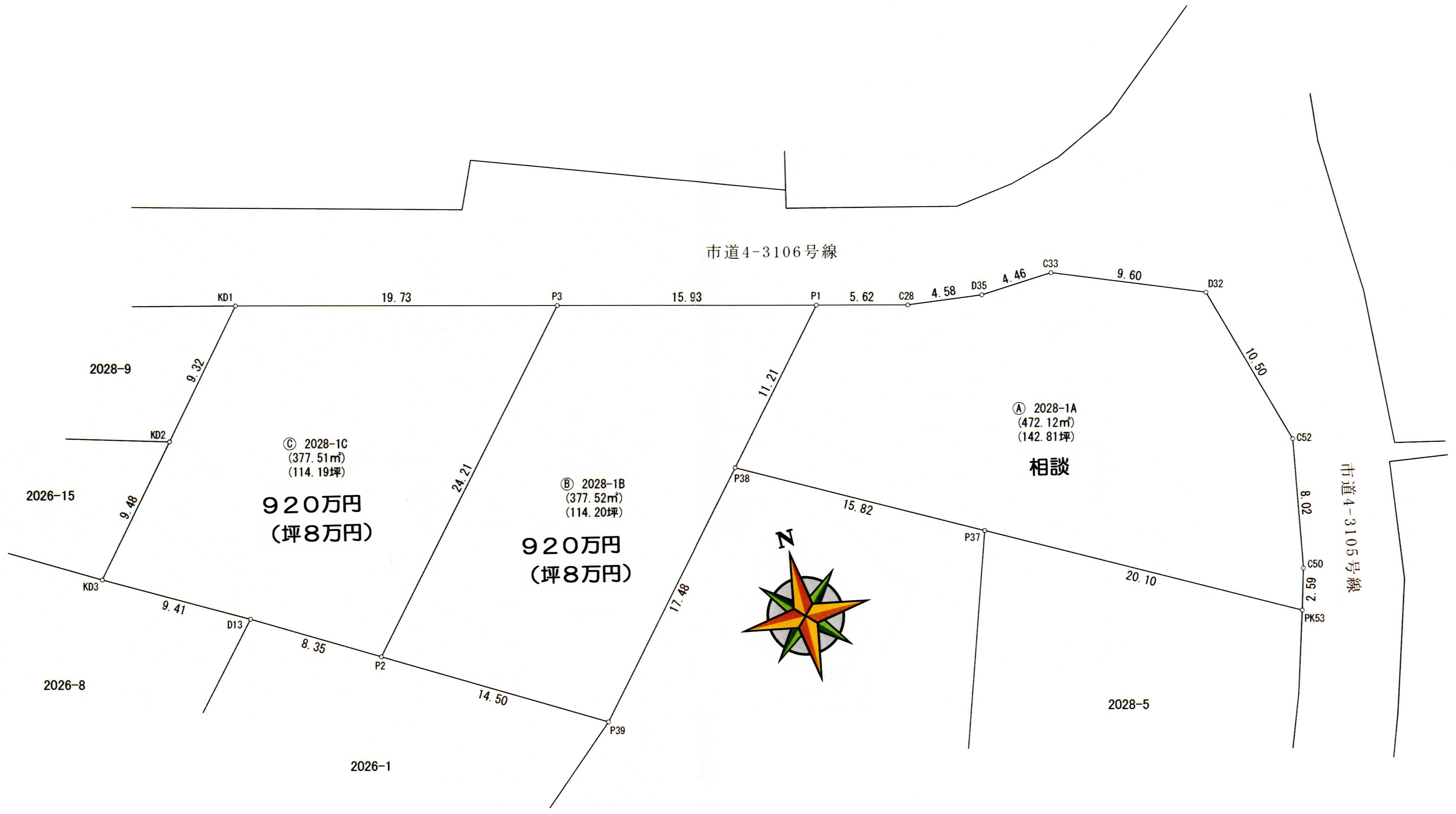 | その他 | 区域指定地内(第2指定区域) 都市計画法第29条開発許可の取得を要します。 宅地盤と道路面の高低差があり、崖地条例にあたりますので、十分に建築計画を詰めてください。 引渡条件は現況有姿となり、駐車場部分の掘削や土留め工事等は買主負担となります。 |