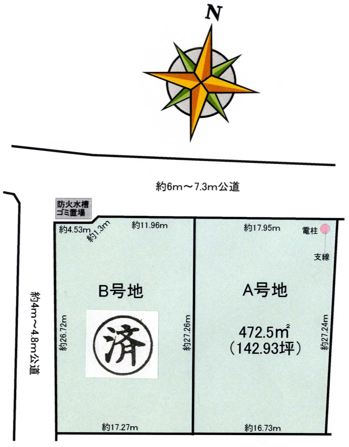 | 道路 | 北側約6m公道に約17.9m接道 | 飲用水 | 公営上水道 |