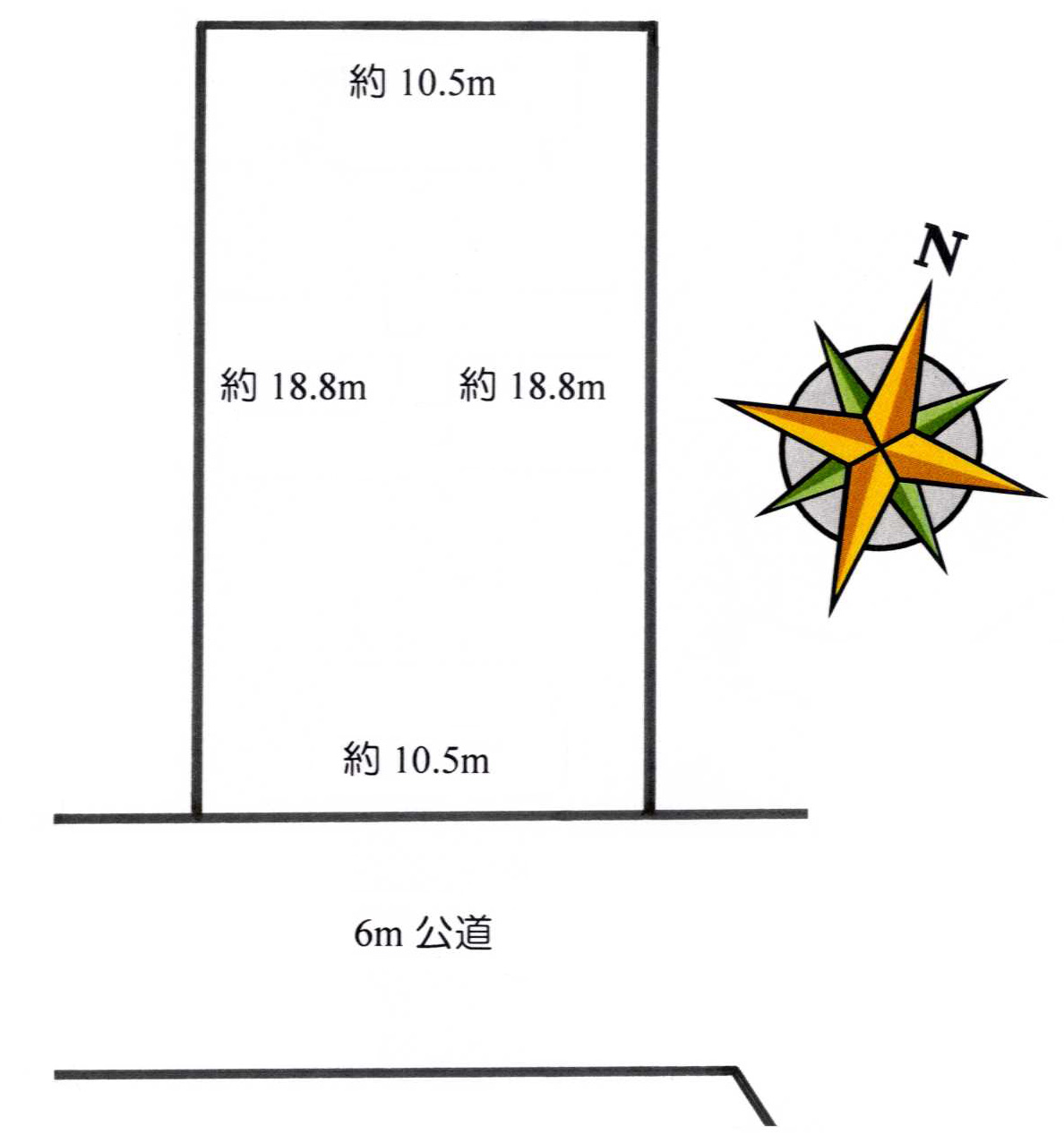 | 道路 | 南側6m公道に約10.5m接道 | 飲用水 | 公営上水道 |