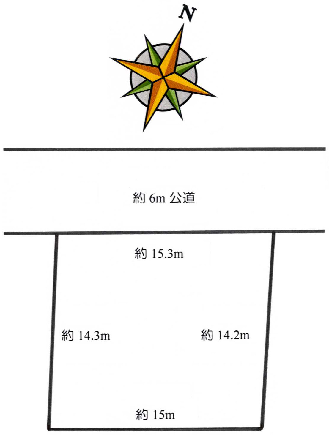 | 道路 | 北側約6m公道に約15.3m接道 | 飲用水 | 公営上水道 |