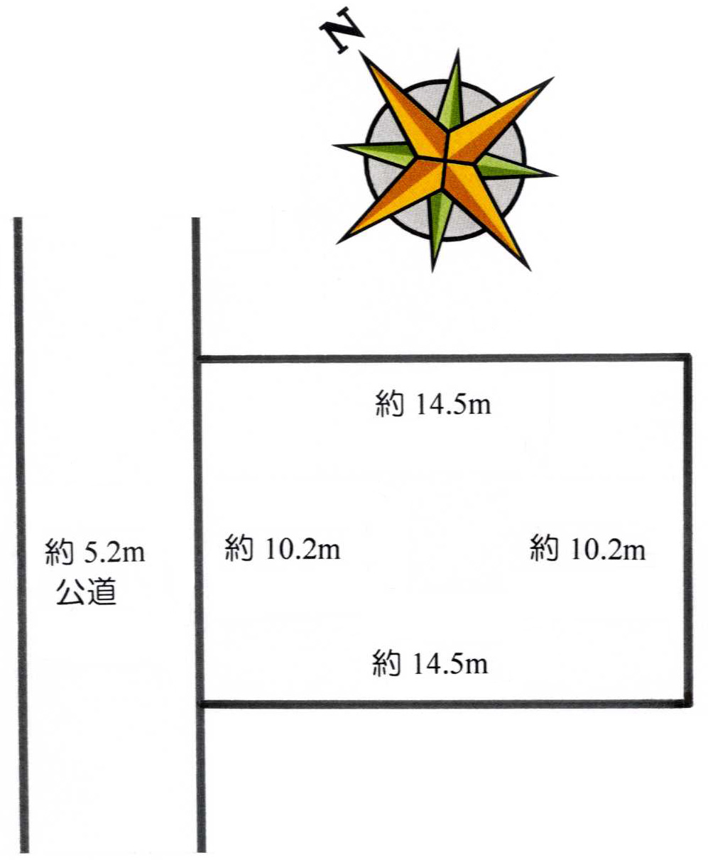 | 道路 | 北西側約5.2m公道に約10.2m接道 | 飲用水 | 公営上水道 |