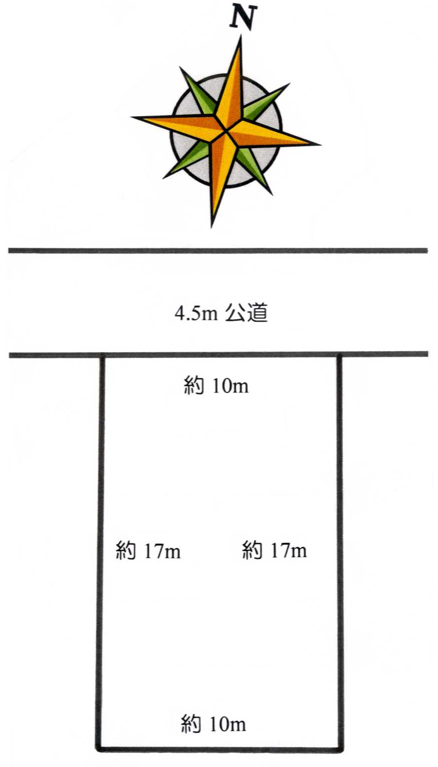 | 道路 | 北側4.5m公道に約10m接道 | 飲用水 | 公営上水道 |