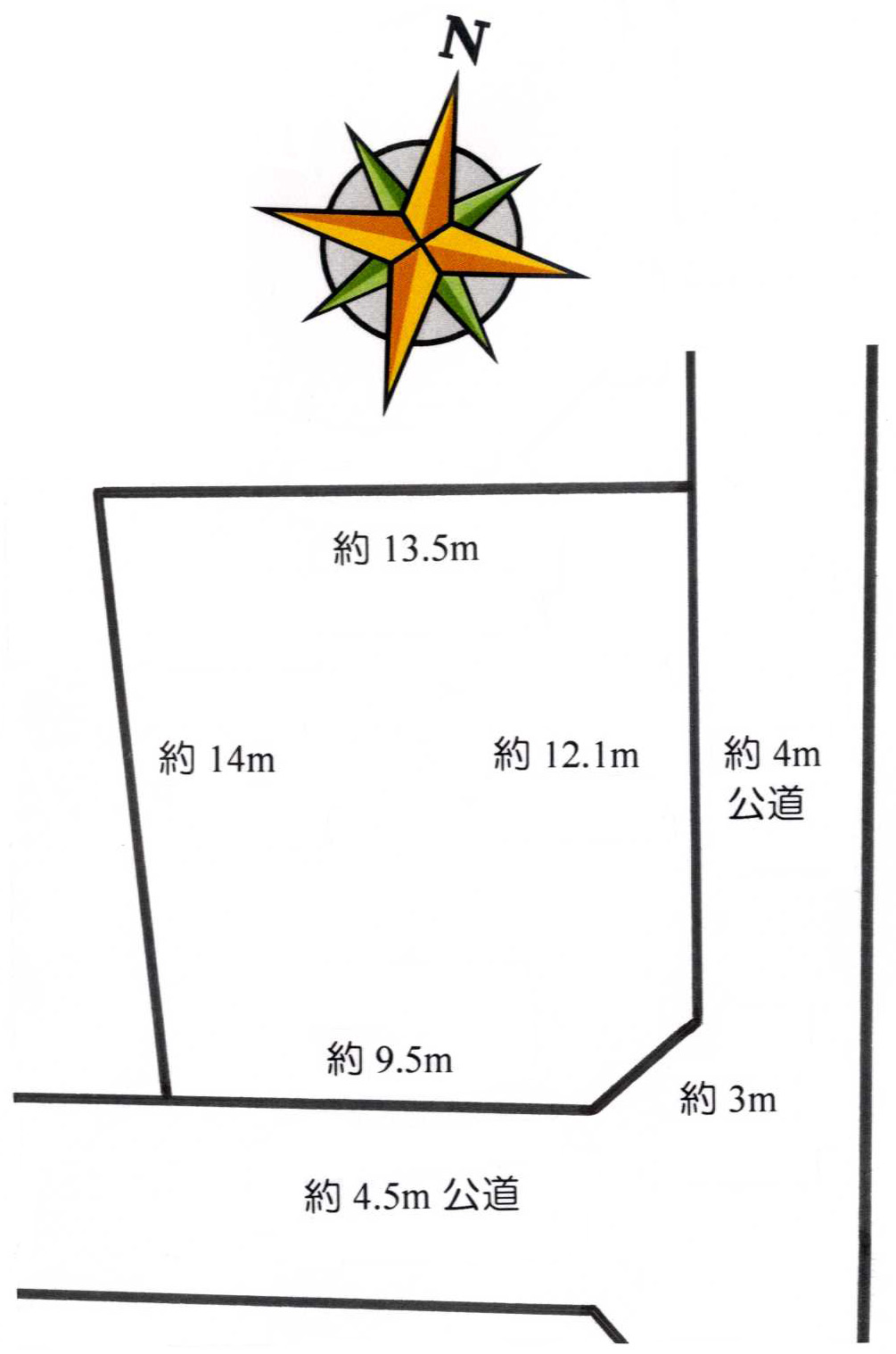 | 道路 | 東側約4m公道、南側約4.5m公道 | 飲用水 | 公営上水道 |