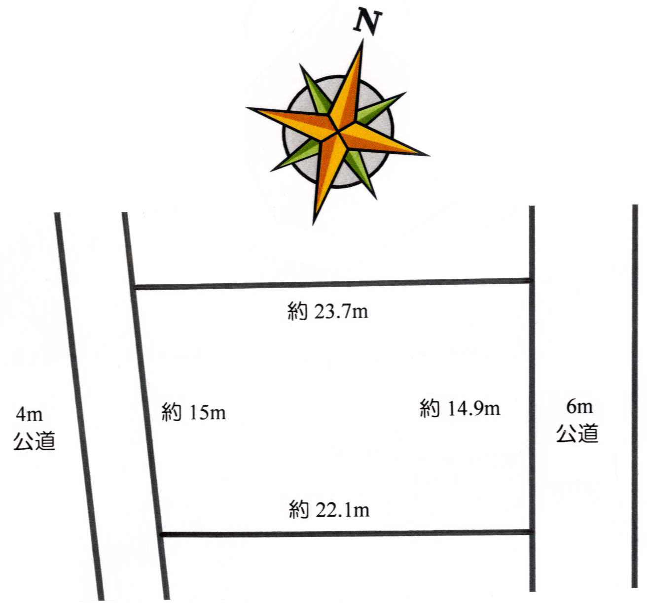 | 道路 | 東側6m公道、西側4m公道 | 飲用水 | 公営上水道 |