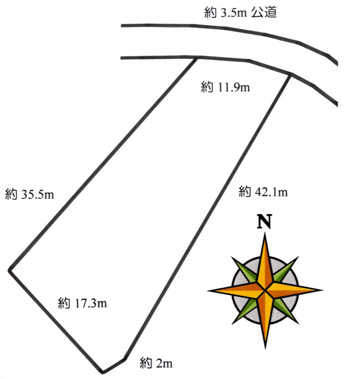 | 道路 | 北側約3.5m公道に約11.9m接道 | 飲用水 | 井戸水 |