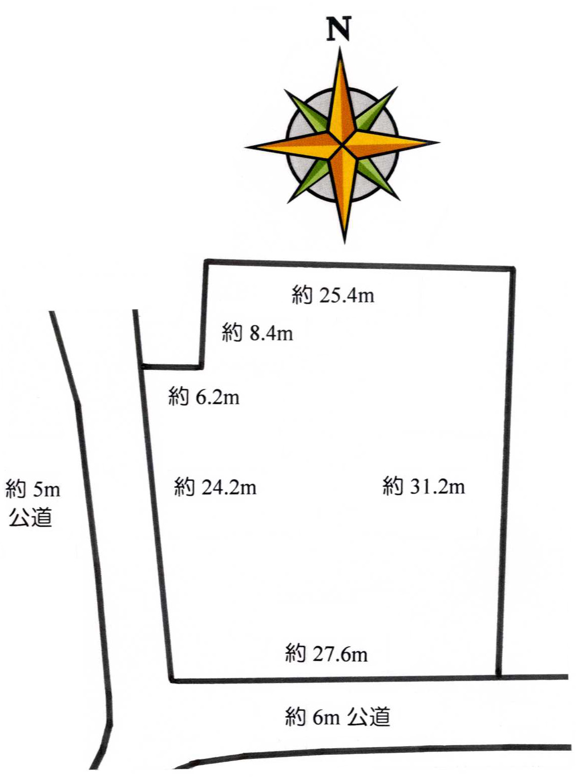 | 道路 | 南側約6m公道、西側約5m公道 | 飲用水 | 井戸水 |